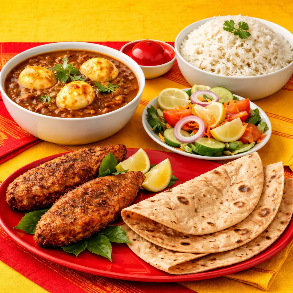 Nutritious meals with the right portions โ dal, sabzi, roti, rice, and raita. No excess oil.